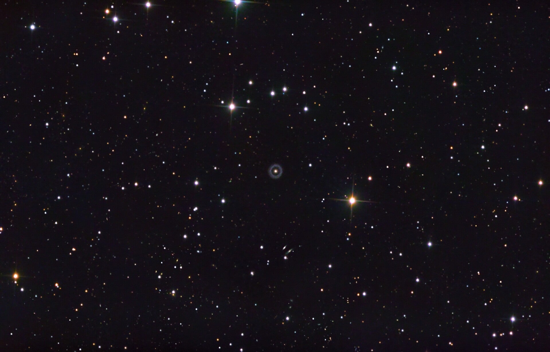 Se află la ~600+ milioane ani-lumină distanță și este faimoasă pentru simetria ei rară. Deși inițial s-a crezut că ar putea fi un efect de lentilă gravitațională, această idee a fost respinsă (inelul și nucleul au același redshift, iar inelul are structură „noduroasă”, tipică regiunilor de formare stelară).