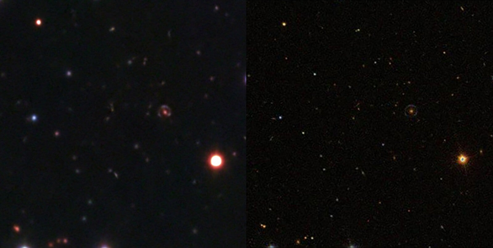 Cosmic Horseshoe (numele tehnic: SDSS J1148+1930), descoperit in 2007, nu este o singură „galaxie”, ci un sistem de lentilă gravitațională: o galaxie masivă din prim-plan îndoaie și mărește lumina unei galaxii mult mai îndepărtate, transformând-o într-un arc aproape circular – un (aproape) inel Einstein.